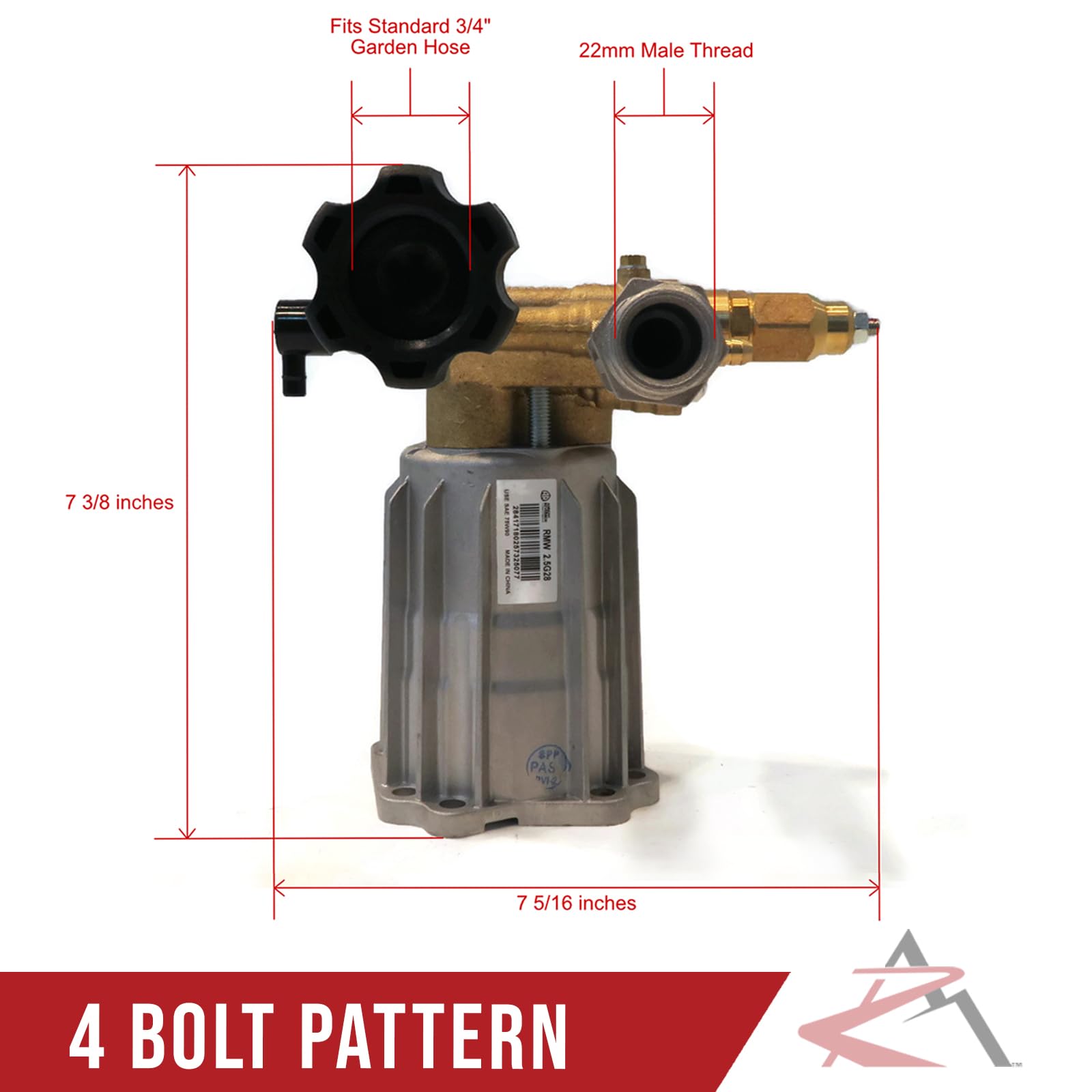 - Includes - (1) Vertical Pressure Washer Pump, (1) Thermal Release Valve, (1) Chemical Injector (both come installed), (4) Bolts, (4) Lock Washers; comes as shown in the first image